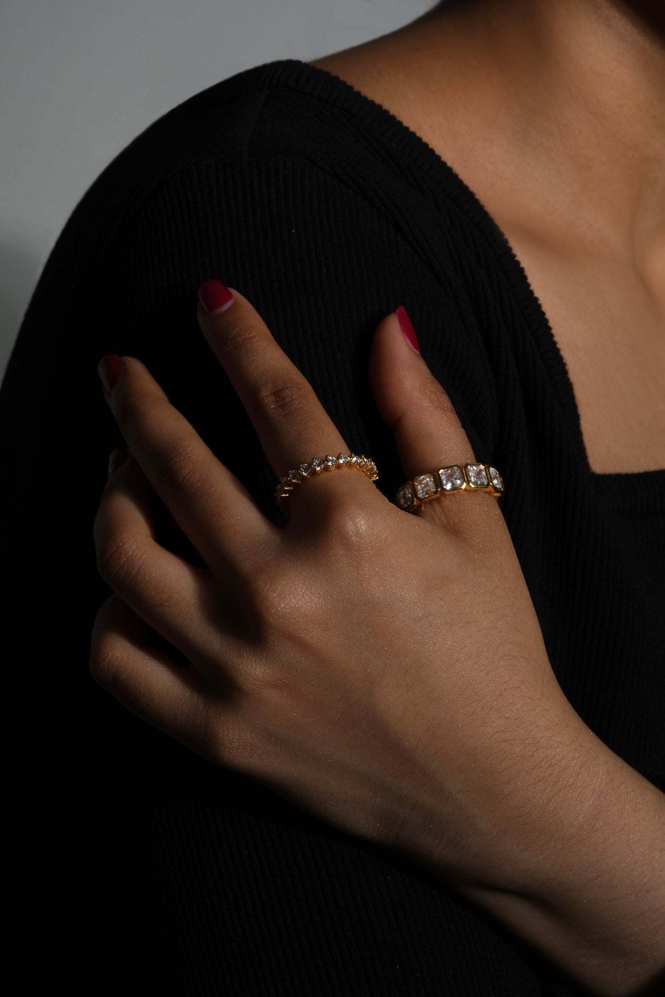For the ultimate in understated style, why not pair our Cherry Full Eternity Ring with some Modernist Tennis Earrings or Labrets - the three-prong setting matches back and stacks up to itself perfectly, so you can always add another layer.