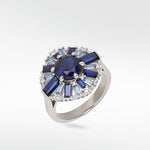 Silver, Cultured Sapphires