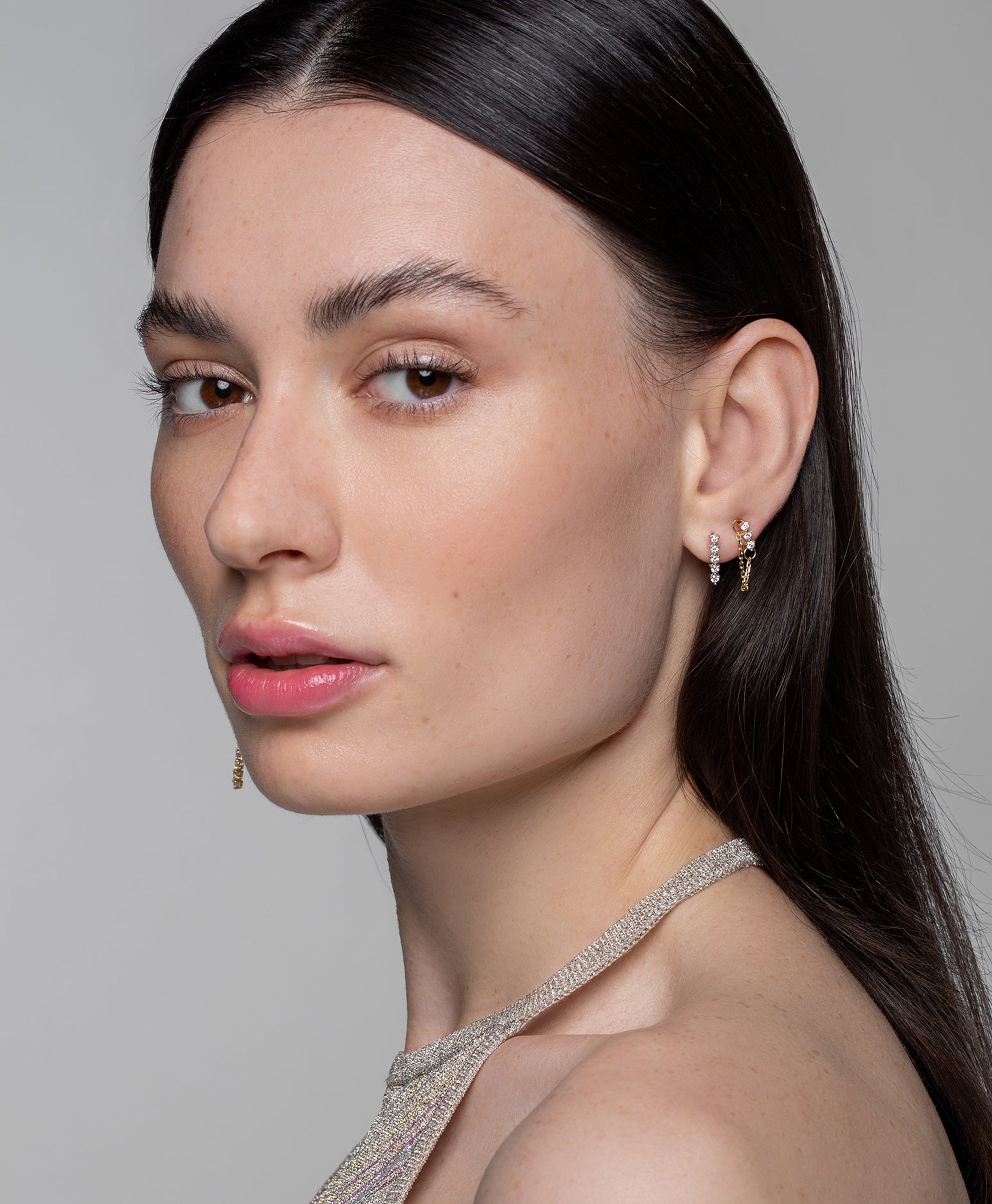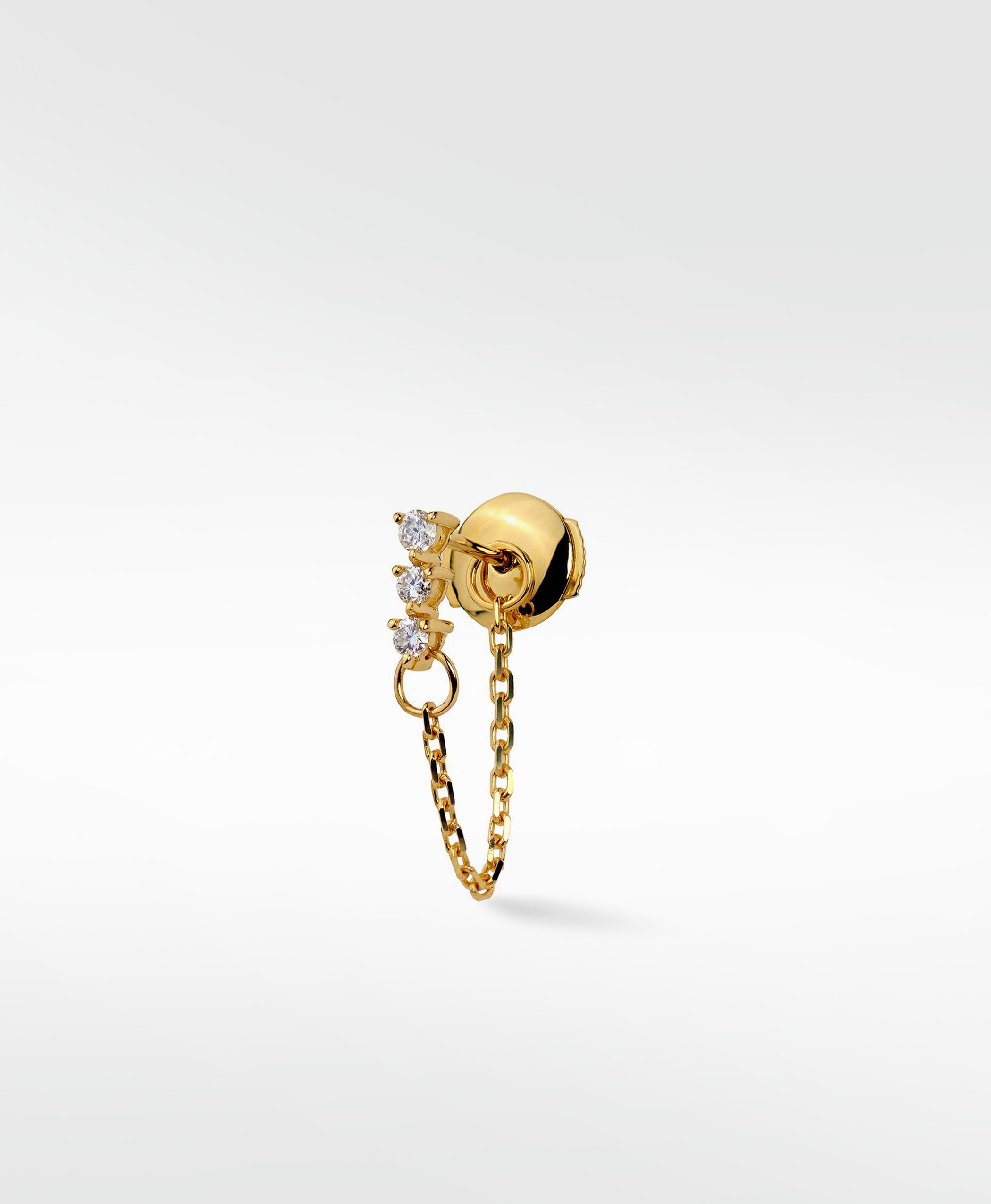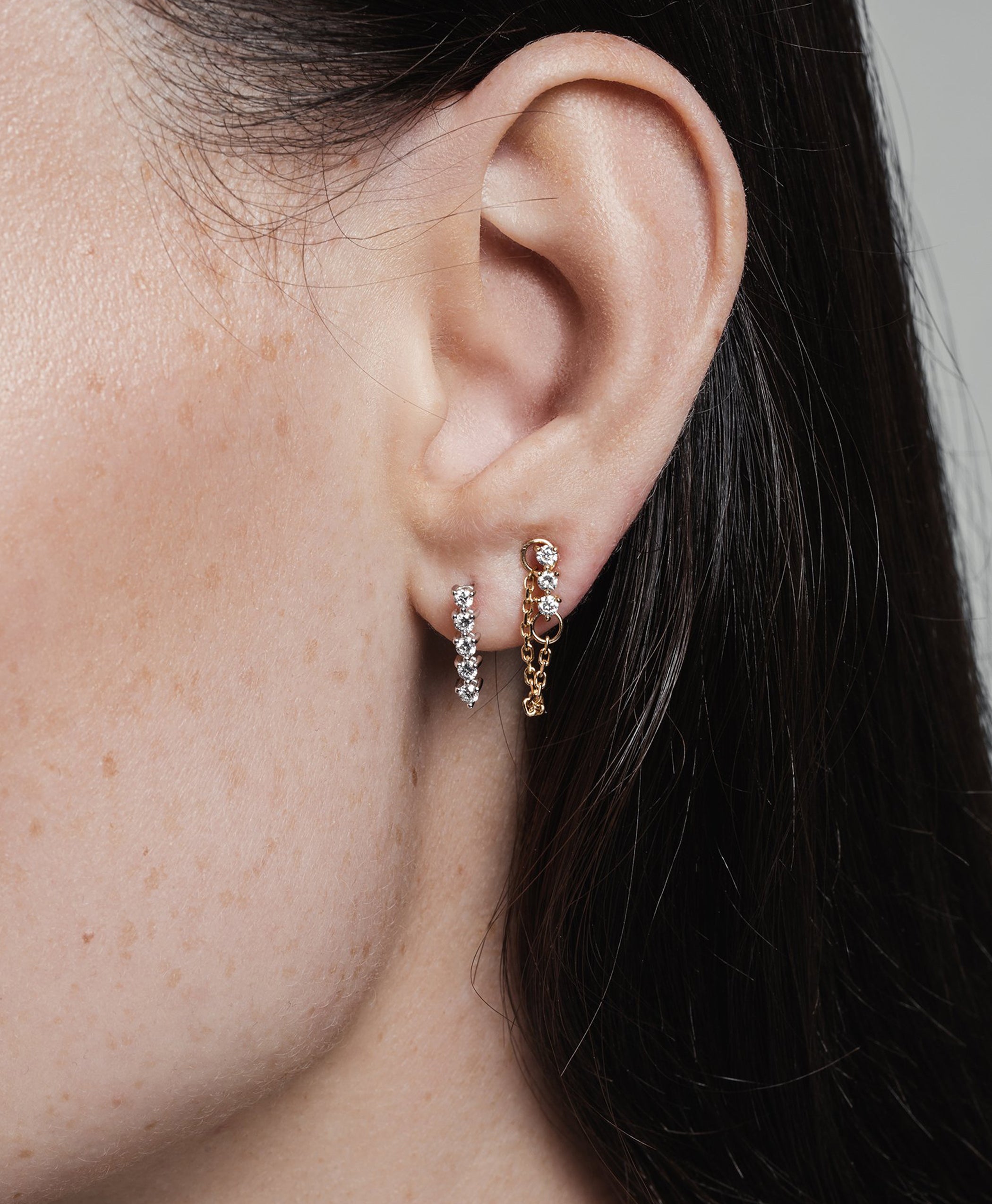 A classic design with an edgy twist is provided with this Modernist Tennis Diamond Earring with Chain. Perfect for adding some glamour to your favorite ripped jeans.