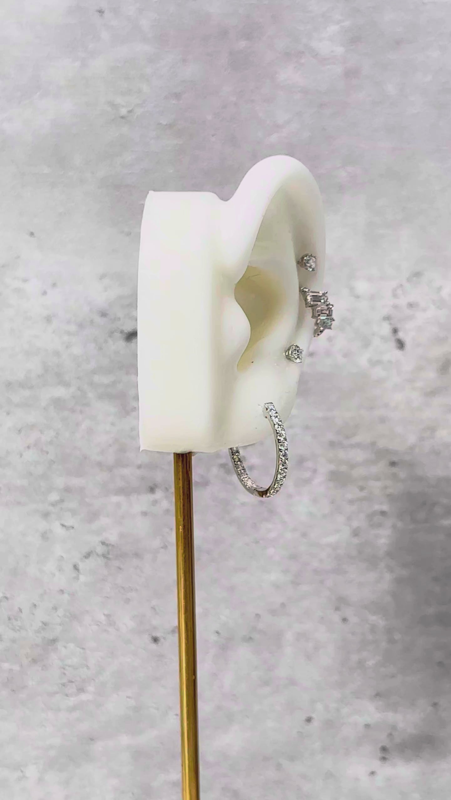 Exquisitely crafted in platinum, these huggies feature a dazzling array of baguette-cut diamonds that capture and reflect light from every angle. Their modern, structured design blends sophistication with contemporary elegance, making them the perfect statement for both everyday wear and special evenings. Timeless, versatile, and unmistakably luxurious - these huggies are a signature addition to any jewellery collection.