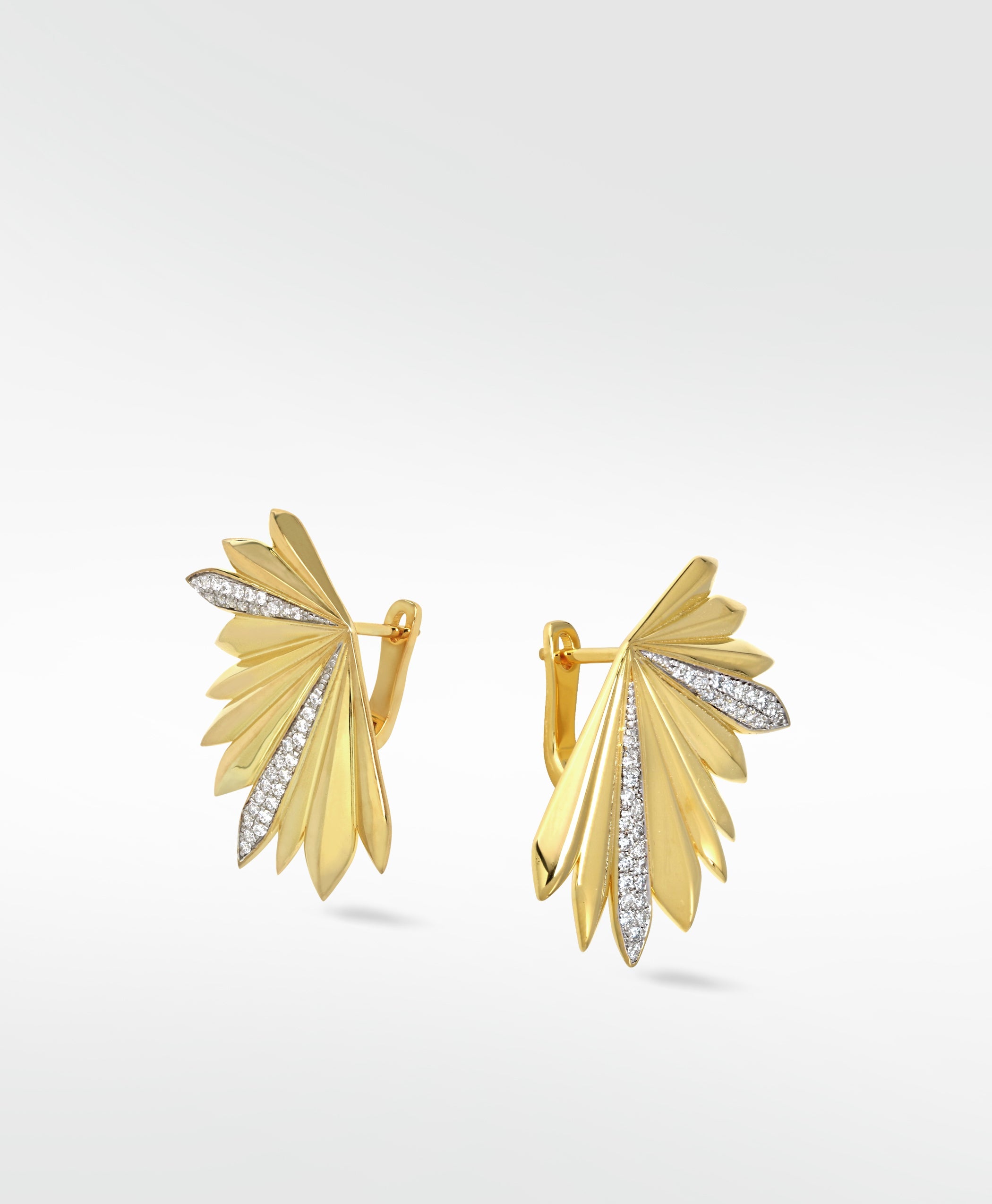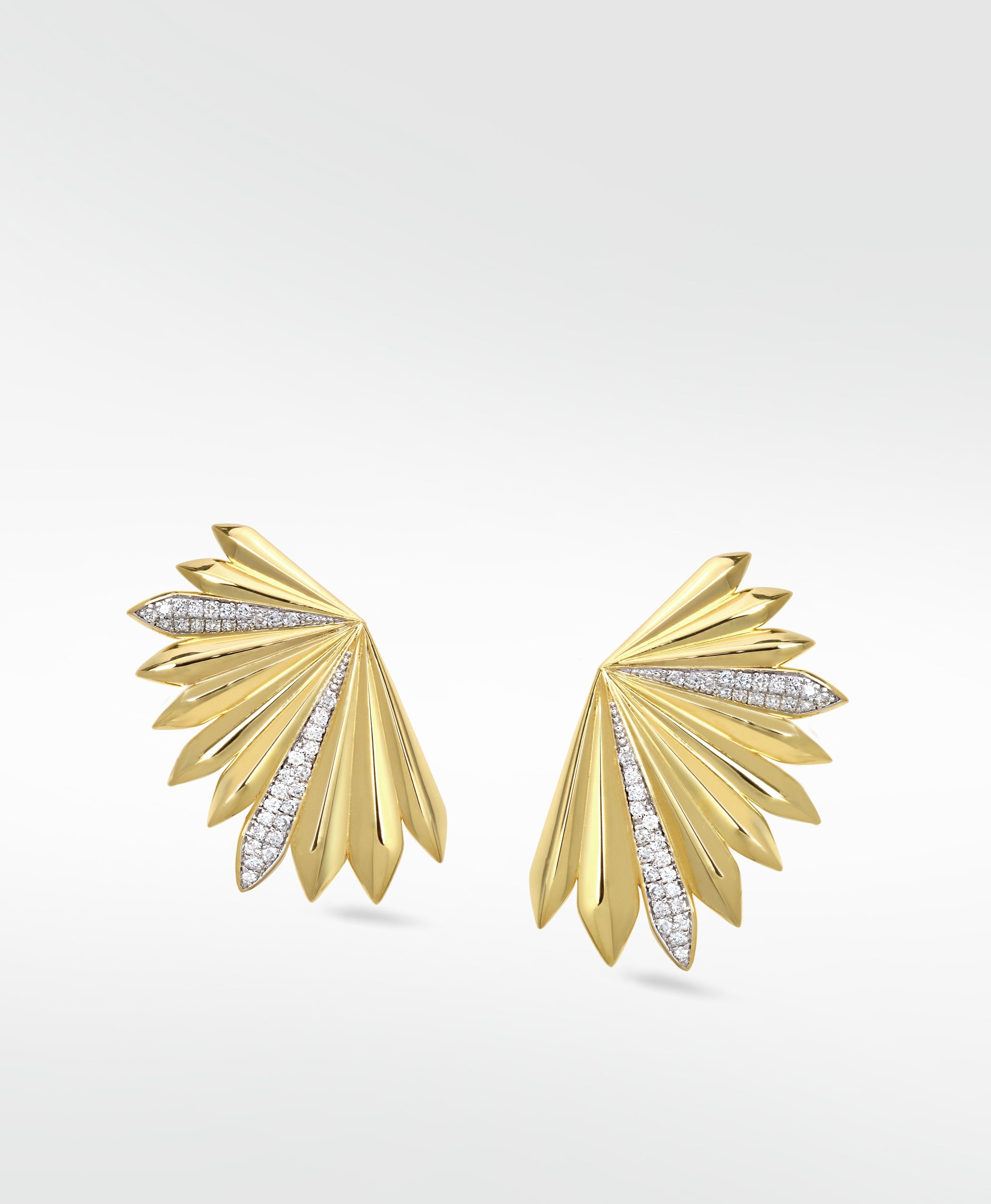 You will stand out of the shade wearing these Palm Diamond Statement Fluted Earrings. With rays of cultured diamonds propelling you into high fashion, their sculptural form is one you piece of art you will want to share with the world.