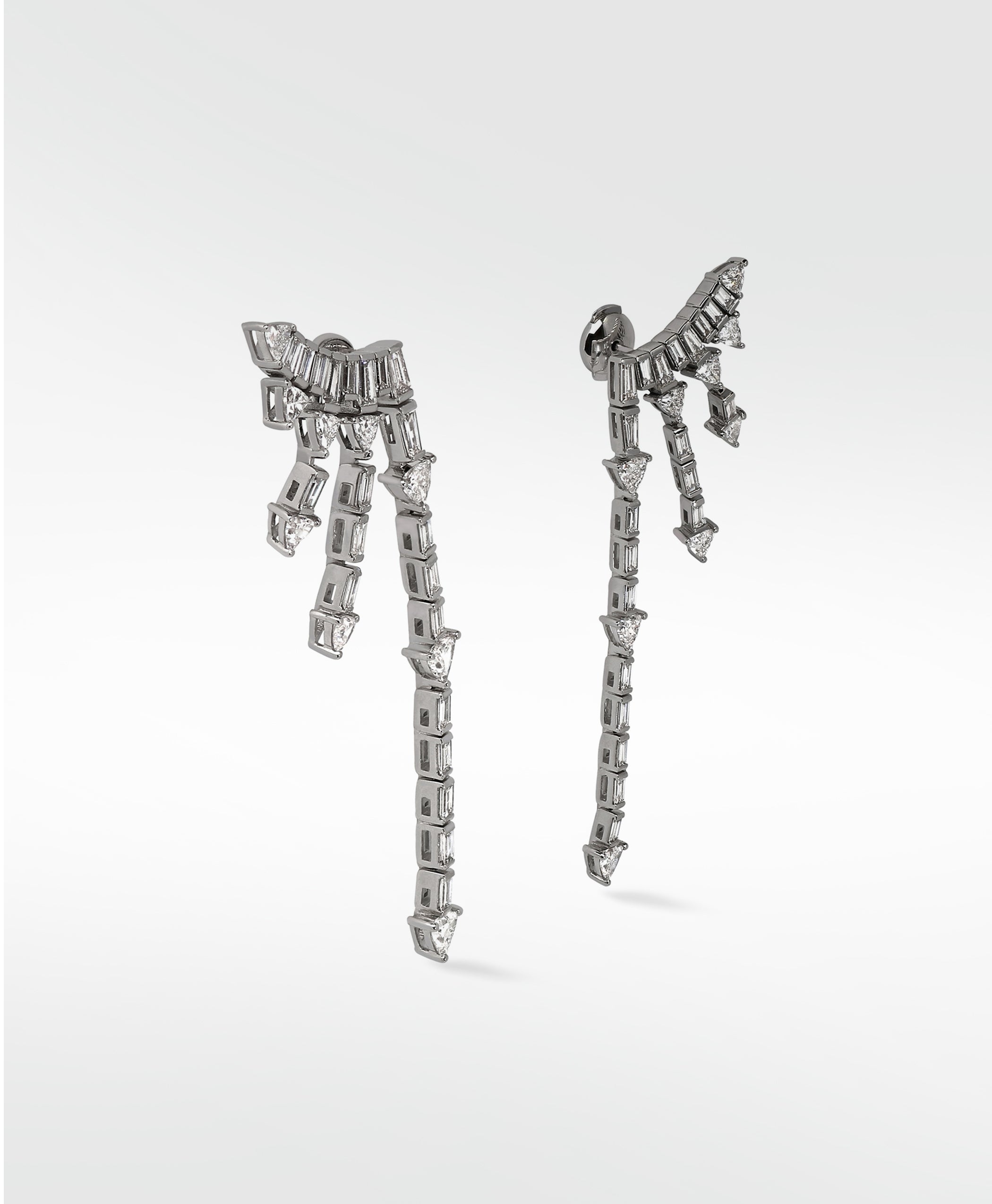 Our de-crafted Supernova Necklace lives on in this glorious 18k White Gold collection. One of a limited series, these spellbinding earrings will spark celestial imagination in anyone who lays eyes on them. Wander with us through our galaxy and onwards to the infinity of space with two pieces of our Academy Awards news-making Supernova.