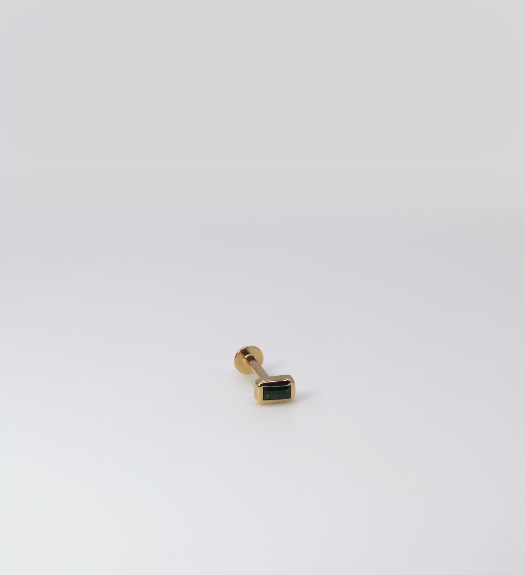 Delicate yet bold, our beautiful cultured stones are encased in 14k gold for the perfect finish to our Veto Blossom Baguette Labret Earring. Perfect to pierce with, whether you are after a new tragus, conch, helix or lobe piercing, a little bit of colour goes a long way.