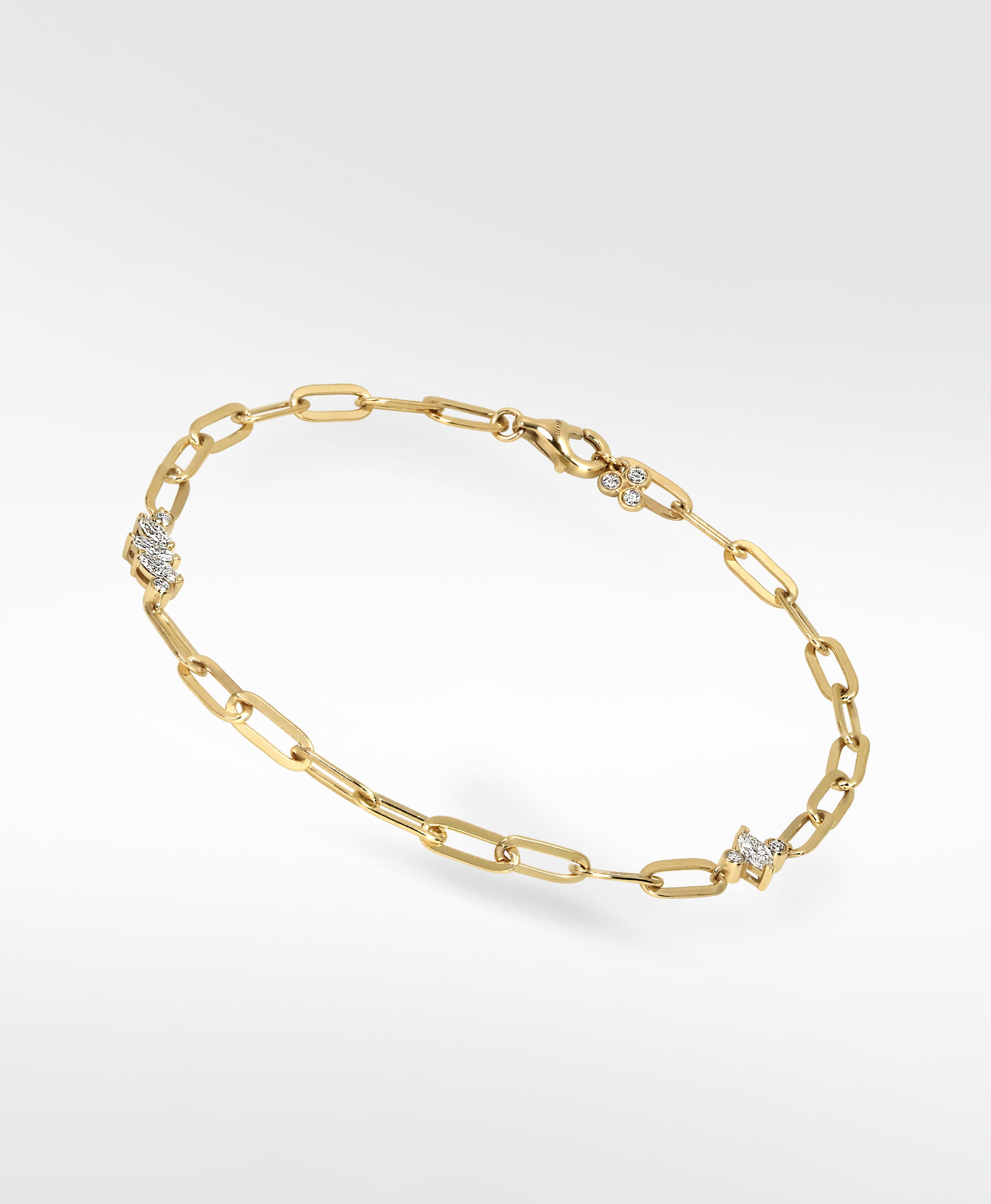 Crafted in 14k gold and set with brilliant diamonds, the Veto Ignis Diamond Statement Bracelet features a versatile paperclip-inspired chain with an adjustable closure, allowing you to wear it at different lengths. A bold yet elegant design, perfect for layering or as a standout piece on its own.