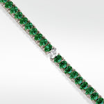 This exquisite tennis bracelet is designed to captivate a portrait set emerald in fancy oval cut. Enhancing its modern allure, a striking offset marquise-cut lab-grown diamond disrupts tradition, transforming it into a truly unique piece.